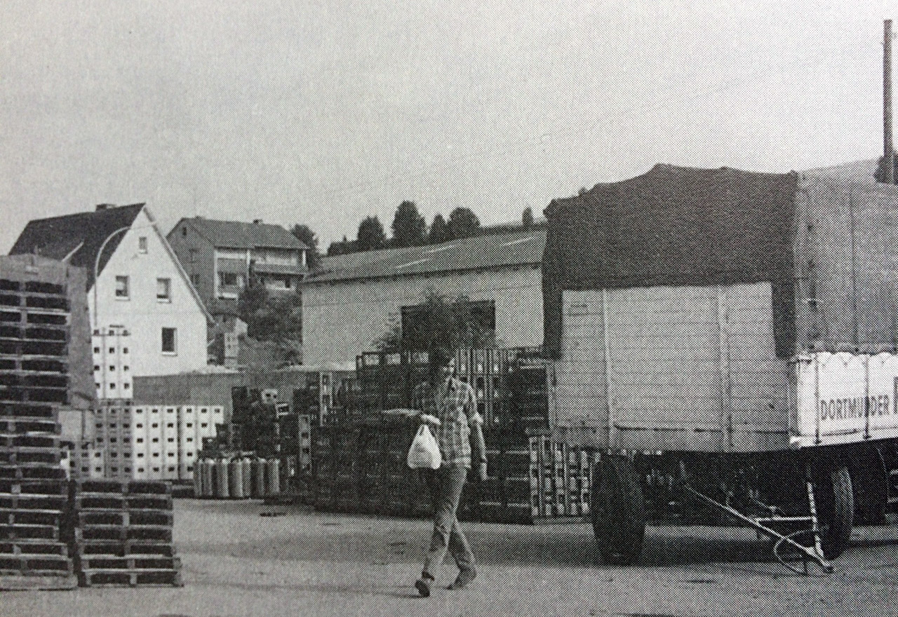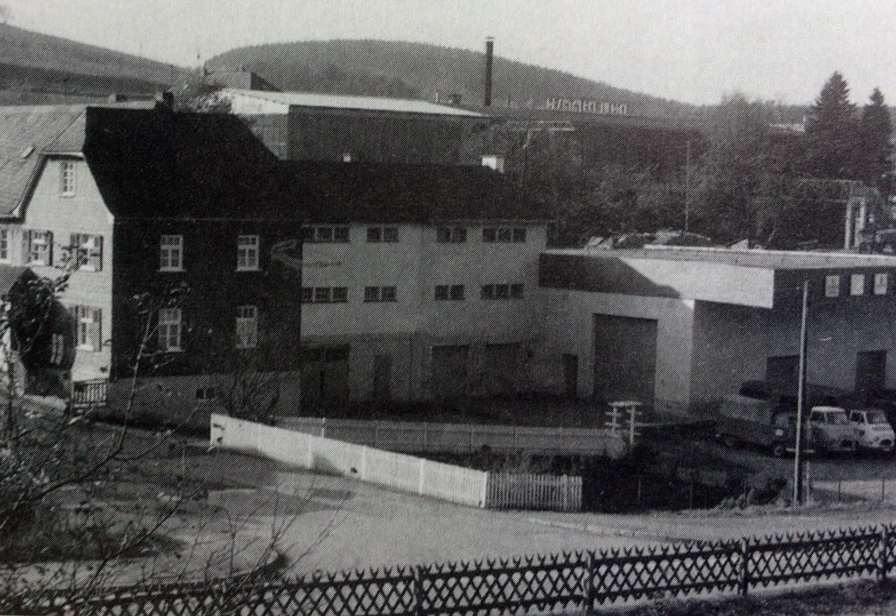 Zu sehen ist hier das Betriebsgelände mit dem Garten, der später auf grund einer Erweiterung weichen musste.